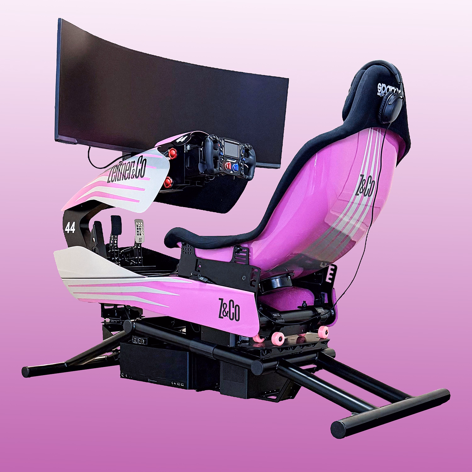The Stage 1 is a European-made construction with elegant and individually designable GRP cladding. With the help of the attached wheels in the front area, our simulator can be moved and is an eye-catcher in every living room. Ergonomic adjustment options for seat angle, steering motor distance and pedal distance and a comfortable entry height.